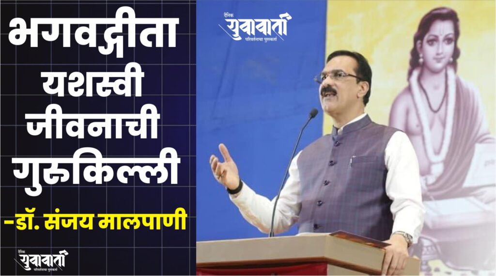 संगमनेर – विपरीत परिस्थितीतही मनोधैर्य खचू न देता आलेल्या संकटावर मात करण्याचा आणि त्यातून पुरुषार्थ गाजवण्याचा मंत्र देणारी श्रीमद् भगवद्गीता म्हणजे यशस्वी जीवनाची गुरुकिल्लीच आहे. जीवनात कशाचा अंगीकार करावा आणि कशाचा त्याग करावा या विषयीचा अनमोल उपदेश गीतेने दिला आहे. माणसाचे जीवन पाण्यावर उठणार्या तरंगाप्रमाणे क्षणभंगुर असते. त्यामुळे ‘मी’ पणाचा अहंकाराचा त्याग करुन मनाचे समत्त्व कसे साधता येईल याचे मार्गदर्शन गीता करते. भगवद्गीता कोणत्या एका विशिष्ट जाती अथवा धर्मासाठी नसून संपूर्ण विश्वातील मानवजातीच्या कल्याणाचे रहस्य त्यात दडल्याचे प्रतिपादन गीता परिवाराचे राष्ट्रीय कार्याध्यक्ष, गीता विशारद डॉ.संजय मालपाणी यांनी केले.