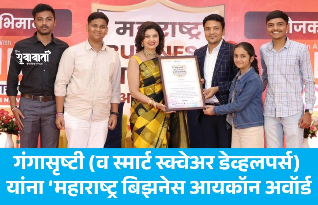 संगमनेर – संगमनेर येथील नामांकित गंगासृष्टी (व स्मार्ट स्क्वेअर डेव्हलपर्स) यांना बांधकाम व गृहनिर्माण क्षेत्रातील उत्कृष्ट व्यावसायिक योगदानाबद्दल ‘महाराष्ट्र बिझनेस आयकॉन अवॉर्ड’ प्रदान करून गौरविण्यात आले. रीसील इन यांच्या वतीने नाशिक येथे आयोजित करण्यात आलेल्या भव्य कार्यक्रमात प्रसिद्ध अभिनेत्री वर्षा उसगावकर यांच्या हस्ते हा प्रतिष्ठेचा पुरस्कार प्रदान करण्यात आला.