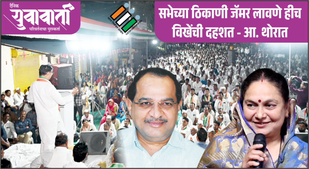 मी शिर्डी मतदार संघाचा मतदार असून संगमनेर प्रमाणे स्वातंत्र्याचे व आनंदाचे वातावरण राहता तालुक्यात निर्माण करण्यासाठी आपण कटिबद्ध आहोत. राहता तालुक्यातील जनतेला गुलामगिरी व दहशतुतून मुक्त करण्यासाठी ही लढाई असल्याने यामध्ये सर्व जनतेने सहभागी होऊन सौ प्रतिभाताई घोगरे यांच्या पाठीशी उभे रहा असे आवाहन करताना आश्वी खुर्द येथील ऐतिहासिक सभा परिवर्तनाची सुरुवात ठरणार असल्याचे प्रतिपादन काँग्रेस विधिमंडळ पक्षाचे नेते आ. बाळासाहेब थोरात यांनी केले आहे आश्वी खुर्द येथे महाविकास आघाडीच्या उमेदवार सौ प्रभावती घोगरे यांच्या प्रचारार्थ आयोजित सभेत ते बोलत होते. यावेळी व्यासपीठावर रिपाई नेते बाळासाहेब गायकवाड, डॉ जयश्री थोरात, शिवसेनेचे सचिन कोते, बापूसाहेब भवर, तात्यासाहेब गायकवाड, मिलिंद कानवडे, सचिन चौगुले, सोनल जगताप, सौ प्रतिभा जोंधळे, अॅड. रामदास शेजुळ, अर्चना भूसाळ, नामदेव शिंदे, प्रमोद बोंद्रे, रामनाथ तांबे, दिपाली वर्पे, गणपतराव सांगळे, विक्रम थोरात, राजेंद्र चकोर, अशोक वाणी, अशोक जोशी, विवेक तांबे, गणेश जोरी आदींसह महाविकास आघाडीचे विविध पदाधिकारी उपस्थित होते.