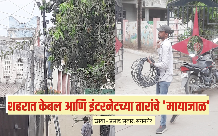 संगमनेर – संगमनेर शहरात सध्या केबल टीव्ही आणि हायस्पीड इंटरनेट देणार्या कंपन्यांमध्ये मोठी स्पर्धा लागली आहे. मात्र, या स्पर्धेत शहराचे विद्रुपीकरण होत असून सुरक्षिततेचा प्रश्नही ऐरणीवर आला आहे. इंटरनेट आणि केबलच्या तारांचे जाळे शहरात झपाट्याने पसरत असताना, हे चालक नियमांचे उल्लंघन करून खासगी इमारती आणि महाराष्ट्र राज्य विद्युत महामंडळाच्या (महावितरण) खांबांचा सर्रास वापर करत असल्याचे दिसून येत आहे. यामुळे संतप्त नागरिक यांना परवानगी कोणी दिली? असा सवाल उपस्थित करत आहेत. शहरातील मुख्य बाजारपेठ, गल्लीबोळ आणि रहिवासी भागांत महावितरणच्या वीज वाहक खांबांवरून केबल आणि इंटरनेटच्या शेकडो तारा ओढल्या गेल्या आहेत. अनेक ठिकाणी या तारांचे वेटोळे खांबांवर लटकलेले दिसतात. पावसाळ्यात किंवा वार्यामुळे या तारांचा विजेच्या मुख्य वाहिनीशी संपर्क येऊन मोठा अपघात होण्याची शक्यता नाकारता येत नाही. विशेष म्हणजे, महावितरणच्या खांबांचा असा वापर करणे बेकायदेशीर असतानाही हे काम बिनदिक्कतपणे सुरू आहे.